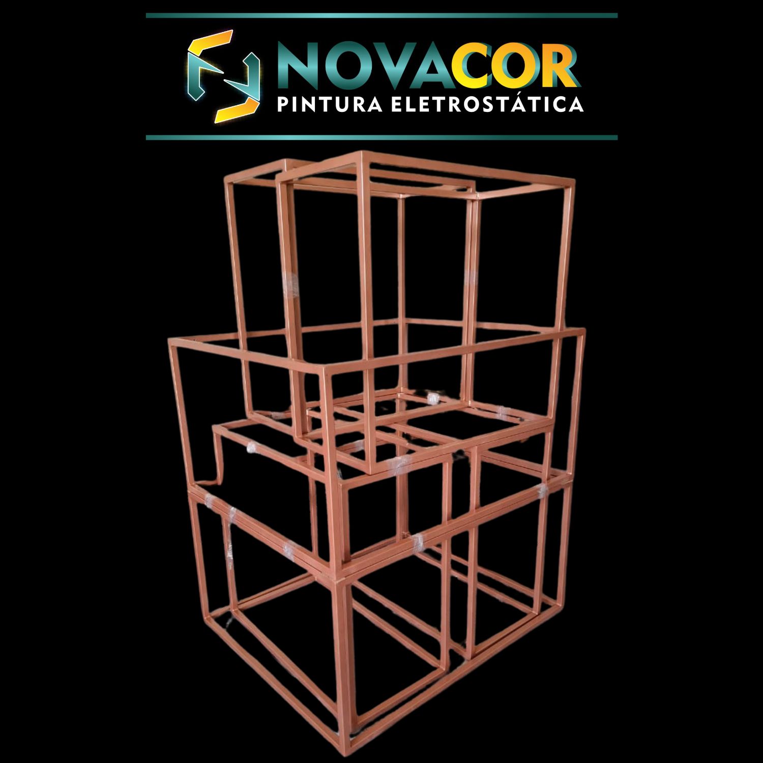 Serviço de pintura eletrostática em estrutura para loja construída de aço carbono com acabamento Rose Gol.